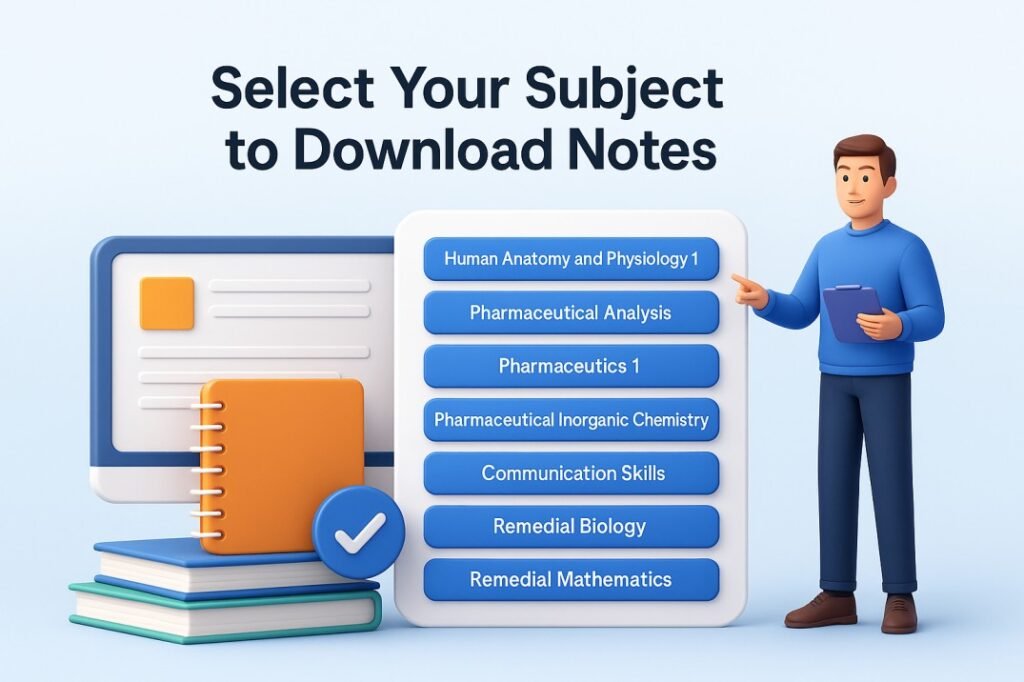 The Bachelor of Pharmacy (B.Pharm) program begins with the 1st semester, laying the foundation for core pharmaceutical knowledge. This semester introduces students to subjects like Pharmaceutical Inorganic Chemistry, Human Anatomy and Physiology, Remedial Mathematics/Biology, Pharmaceutical Analysis and more. Each subject plays a crucial role in shaping a student’s understanding of basic pharmacy concepts. These notes are designed to help B.Pharm students grasp key topics quickly, revise efficiently, and prepare confidently for university exams.