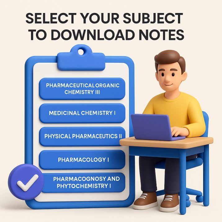 In this post, we’ve included complete PDF notes for each subject of B.Pharm 3rd semester: Pharmaceutical Organic Chemistry III, Medicinal Chemistry I, Physical Pharmaceutics II, Pharmacology I, and Pharmacognosy and Phytochemistry I. Each subject is divided into units, and you can download the notes for each unit separately. These notes are useful for semester preparation, assignments, viva, and competitive exams like GPAT.